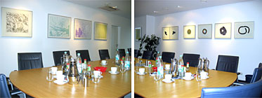 Und so könnte Ihr Besprechungsraum aussehen. Größere Wandflächen erlauben bildnerische Themenkomplexe.