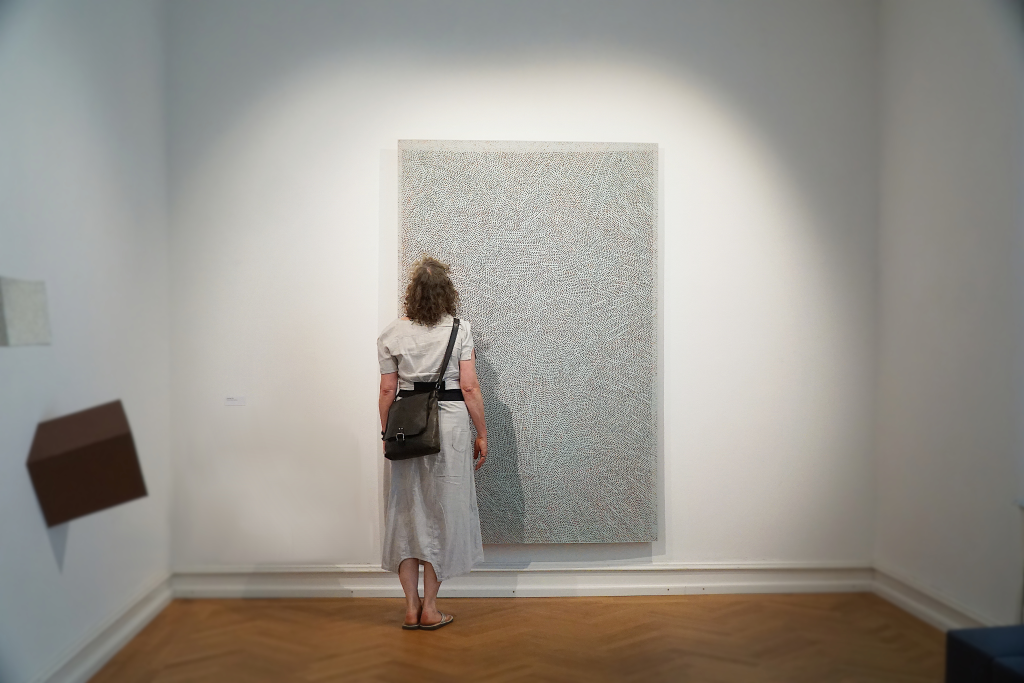 Im Mittelpunkt dieses Vermittlungsformates steht die gemeinsame Betrachtung eines ausgewählten Kunstwerkes: In einem moderierten ca. einstündigen Gespräch mit den Teilnehmenden soll ein dialogischer Austausch angeregt werden – in dem Fragen gestellt, die Gedanken in Bewegung gesetzt und die Sicht auf Kunst und uns selbst reflektiert werden können. Vorkenntnisse sind nicht erforderlich, Neugier genügt.