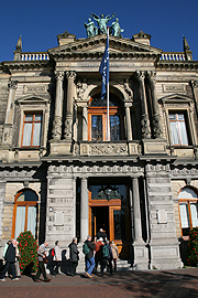 Donnerstag besuchten wir die Stadt Leiden, Sitz der ältesten Universität der Niederlande und Geburtsstadt des Künstlers Rembrandt Harmenszoon van Rijn. Leiden gilt als schönste Stadt der Niederlande mit erhaltenem Grachtenring und größtenteils erhaltenen Grachtenhäusern in der Innenstadt. Am Morgen besichtigten wir das Reichsmuseum für Völkerkunde mit Zeugnissen der jahrhundertlangen Beziehungen der Niederlande in alle Kontinente der Welt. Dr. Krieger führte die Teilnehmer in die Biographie des Arztes und Naturwissenschaftlers Philipp Franz von Siebold ein. Als Arzt im Dienst der Niederländer war Franz von Siebold von 1823 bis 1930 in Japan auf Deshima in Nagasaki und von 1859 bis 1862 erneut in Japan. Er gilt als Begründer der modernen Chirurgie in Japan und auch der Japanologie mit seinen Werken über die Flora und Fauna Japans. Nach seinem Japanaufenthalt besaß er zeitlebens ein repräsentatives Stadthaus in Leiden. Seine umfangreiche Sammlung aus Japan war Grundstock des Reichsmuseums für Völkerkunde in Leiden. Seit 2005 ist das Sieboldhuis ein Japanmuseum.
