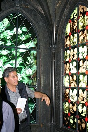 Dr. Krieger erklärte die Chapelle, ein Kunstwerk von Wim Delvoye, welche beim Bau des Museums in das Gebäude integriert wurde. Provokante Röntgenbilder von Skeletten, Gedärmen und abstruser Objekte zieren Fenster der komplett aus Stahl bestehenden Kapelle. Zum zehnjährigen Bestehen des Museums wurde Wim Delvoye der gesamte Ausstellungsbereich des Museums gewidmet.