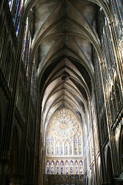Besonders erstrahltem bei dem Morgenlicht die Glasfenster der Kathedrale im Langhaus, im Chor, dem nördlichen und südlichem Querhaus und der Fensterrose in der Westfassade. Die berühmten Fenster von Marc Chagall im Chorumgang mit Szenen der Schöpfungsgeschichte zeigen sich im besten Licht. Die Kathedrale Saint-Étienne wurde von 1220 bis 1520 im Stil der Gotik erbaut und ist eine der schönsten und auch größten Kirchengebäude Frankreichs. Am frühen Nachmittag folgte eine kundige Stadtführung durch die Zeit von Mittelalter und Renaissance in Metz.