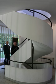 Danach richteten wir unseren Blick in die Moderne. Am Freitagmorgen referierte uns Herr Dittrich am Beispiel der Villa Savoye die konsequente Umsetzung der Formensprache Le Corbusiers aus seinem Manifest „Fünf Punkte zu einer neuen Architektur“ von 1923: das Haus auf Stützen (Pilotis), der Dachgarten, der freie Grundriss, das lange Fenster (Fensterband) und die freie Fassade.
