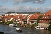 Herr Dr. Vomm erklärte und die Adamspforte und den Dom. Diese der Hauptzugang zu dem Dom und zeigt neben Stephanus, Heinrich II, Kunigunde, Petrus, Adam und Eva als lebensgroße Aktfiguren erstmals seit der Antike. Berühmt sind der Bamberger Reiter, die älteste erhaltene mittelalterliche Darstellung eines Reiters, welcher um 1235 als mehreren Schilfsandsteinblöcken von einem unbekannten Meister gehauen wurde. Das Hochgrab mit der Darstellung des heiligen Kaiserpaars Heinrichs II und seiner Gemahlin Kunigunde wurde 1513 von Tilmann Riemenschneider geschaffen. Unsere Stadtbesichtigung setzten wir nach dem Dombesuch fort. An der Schleuse 100 setzten wir mit der Fähre über zum Internationalen Künstlerhaus Villa Concordia über. Diese Institution für Literatur, bildende Kunst und Musik wurde am 20.10.1997 durch das Bayrische Staatsministerium für Wissenschaft, Forschung und Kunst gegründet. Bis zu zwölf Künstler erhalten hier ein einjähriges Stipendium mit Wohnung und Atelier. Von 1997 bis 2010 wurde es von Bernd Goldmann geleitet. Seit April 2010 führt die Lyrikerin Nora-Eugenie Gomringer diese Institution. Die barocke Villa Concordia ist von 1716 bis 1722 am Ufer der Regnitz von dem Hofbeamten Ignaz Tobias Böttinger in Auftrag gegeben und von Johann Dientzenhofer gebaut worden. Bis 1787 war das Haus in Familienbesitz.
