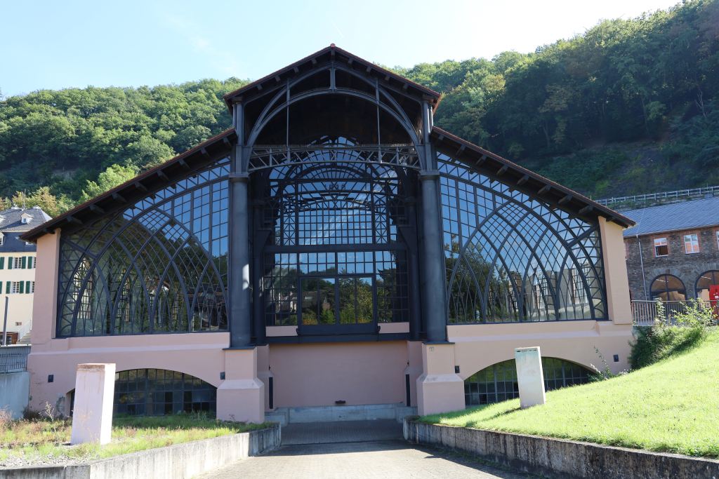 Schon nach kurzer Weiterfahrt nach Bendorf-Sayn erreichten wir unser nächstes Ziel, die Sayner Hütte. Diese Königlich-Preußische Gießhalle, von 1828 bis 1830 erbaut, war das Innovationszentrum der Gusseisen Technologie und des Eisenkunstgusses seiner Zeit, geleitet von Carl-Ludwig Althans. Die Sayner Hütte gilt als früheste Industriehalle mit selbsttragender Gusseisenkonstruktion, Hängekransystem und Hochofentrakt. Als einziges barockes Bauwerk verblieb das Comptoir. Eine Führung leitete uns durch das große Industriegelände und die Museumsausstellung. In der großen Krupp´schen Halle mit dem Eingangsbereich für Besucher durften wir unser vorbereitetes Picknick für die Reiseteilnehmer anbieten.